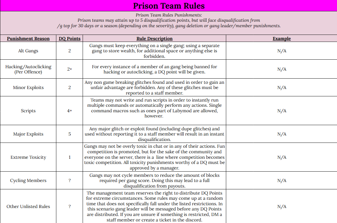 Disclaimer: The management team reserves the right to assign punishments for any circumstances that may harm the server but are not listed under any pre-existing rule. This includes loopholes, abuse, and any other ways that may affect the server. This is just a precaution to ensure that all members of the community get a positive experience when playing on the server!