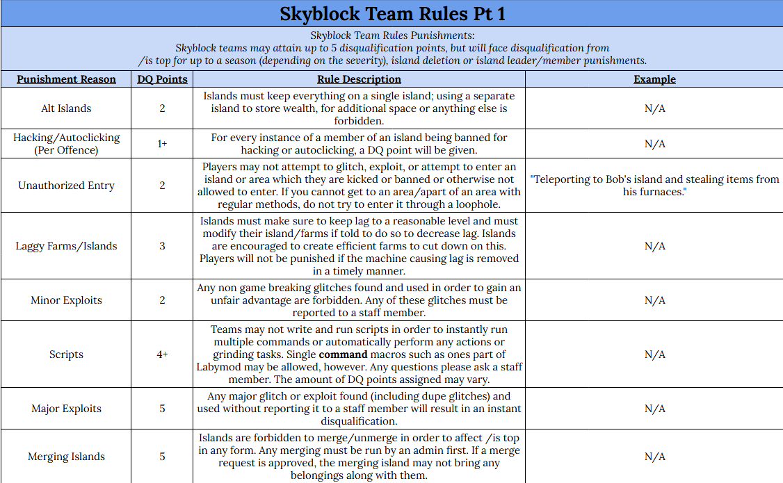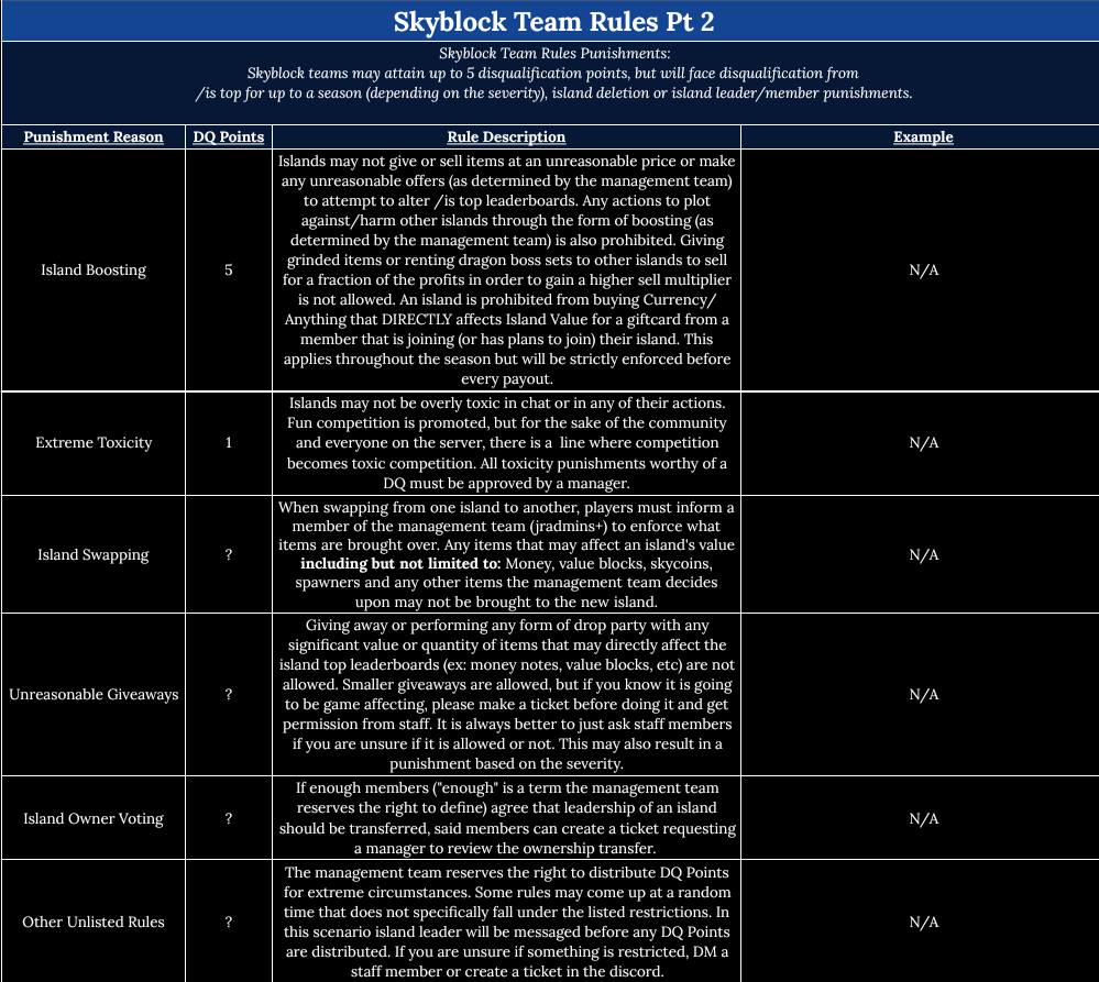 Disclaimer: The management team reserves the right to assign punishments for any circumstances that may harm the server but are not listed under any pre-existing rule. This includes loopholes, abuse, and any other ways that may affect the server. This is just a precaution to ensure that all members of the community get a positive experience when playing on the server!